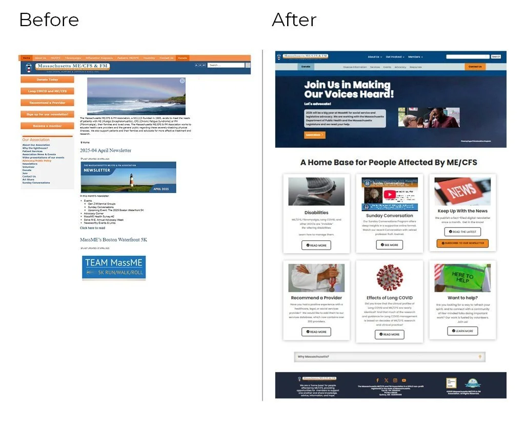 The Massachusetts ME/CFS & FM Assocation were using an outdated version of Joomla to maintain their site, but the version had reached end of life.